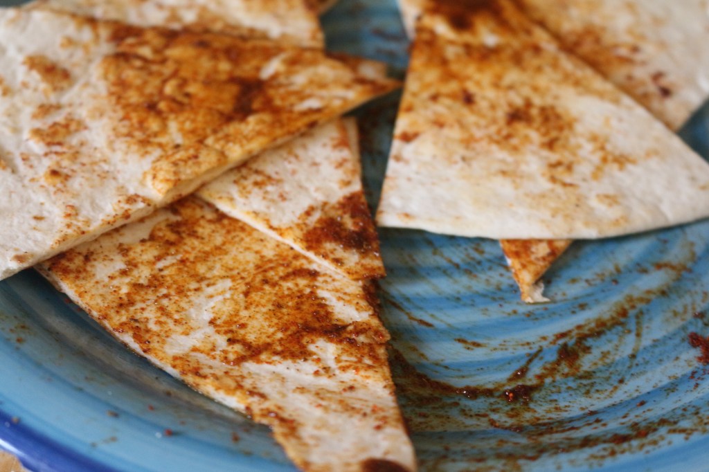 - Simply cut up 4 tortillas (one per person) into halves, and then again into quarters, and once again into eighths so that each tortilla piece is a triangle shape.