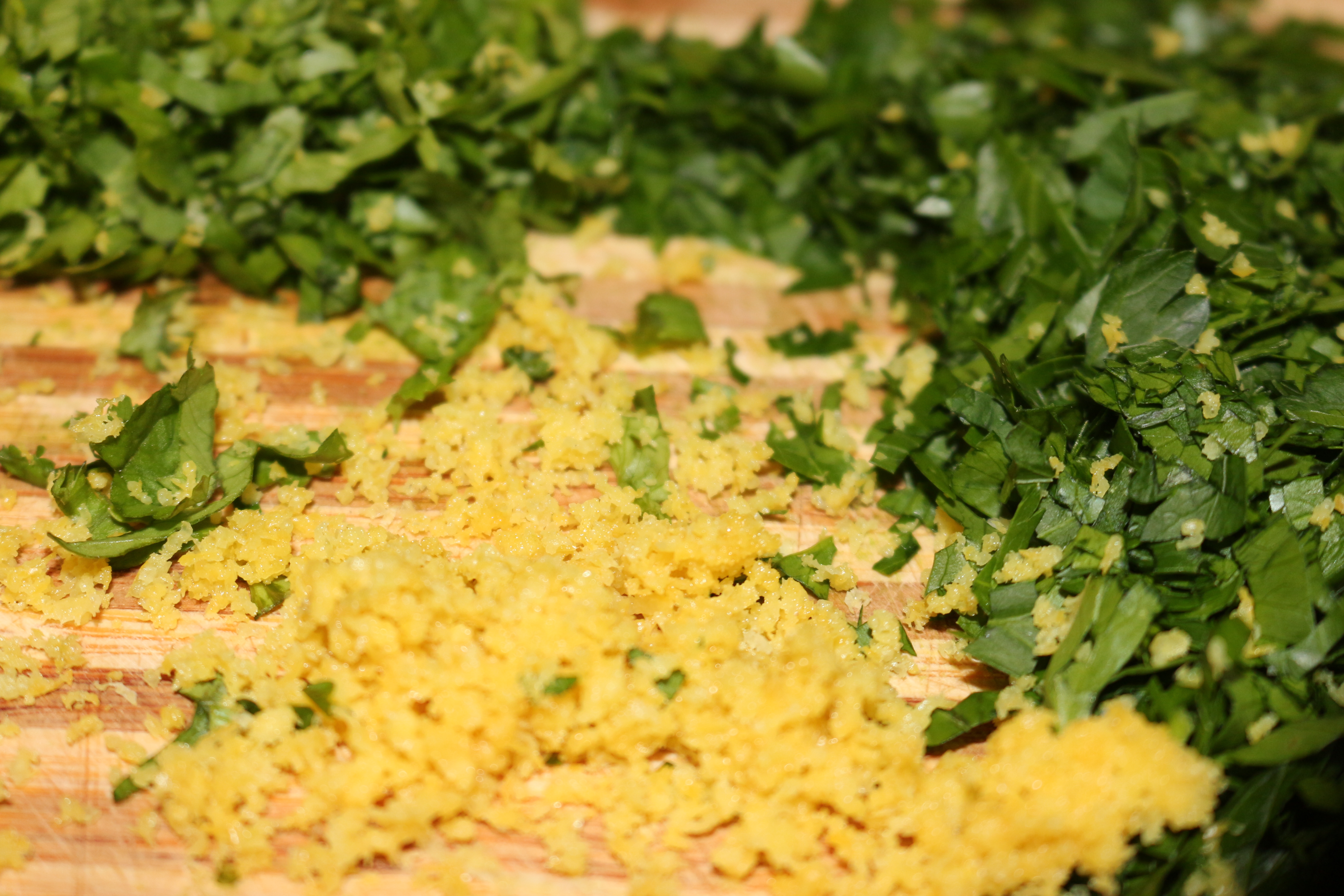 - Roughly chop the parsley and coriander, or whatever fresh herbs you have chosen to you, and zest and juice the lemon. Add the to cous cous with a little drizzle of oil and mix everything together!